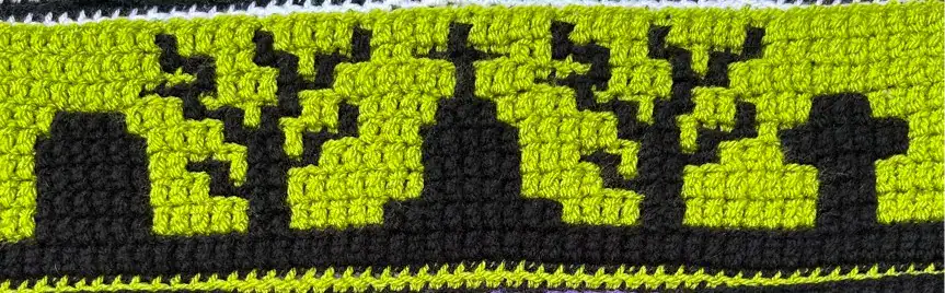 For this blanket, you will want to ensure you are following the mosaic charts from the same direction in each row. For mosaic crochet, you do not go back and forth for each row. There is a section that you do not want to work in the wrong direction, or you risk having backward lettering, so be sure to read the charts according to which hand you use to crochet.